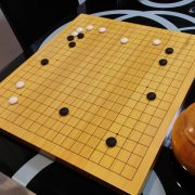 In Weiqi, two players take turns placing their stones (the black ones traditionally are made of Slate, and the white ones traditionally are made of Clam shells) on the intersections of lines on the board. There are 19 lines from one side of the board to the other, and 19 lines from the top to the bottom. The idea is to fence off more space than your opponent, outlining your “territory” with your stones. When stones are surrounded by stones of the opposite color, they are “dead” and can be “captured.” At the end of the game, the players figure out the amount of space they have claimed, and the one who has the most spaces wins.